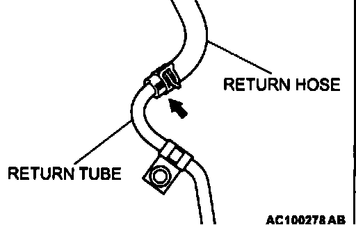 Install the return hose so that the markings are positioned as shown in the illustration.