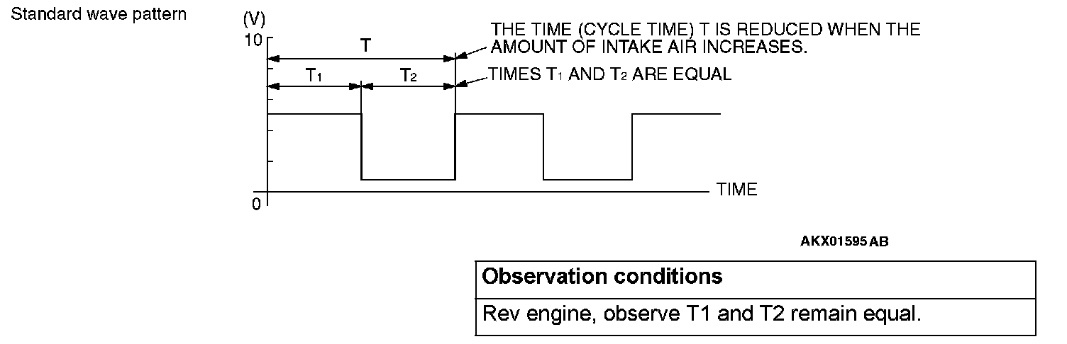 Check that cycle time T becomes shorter and the frequency increases when the engine speed is increased.