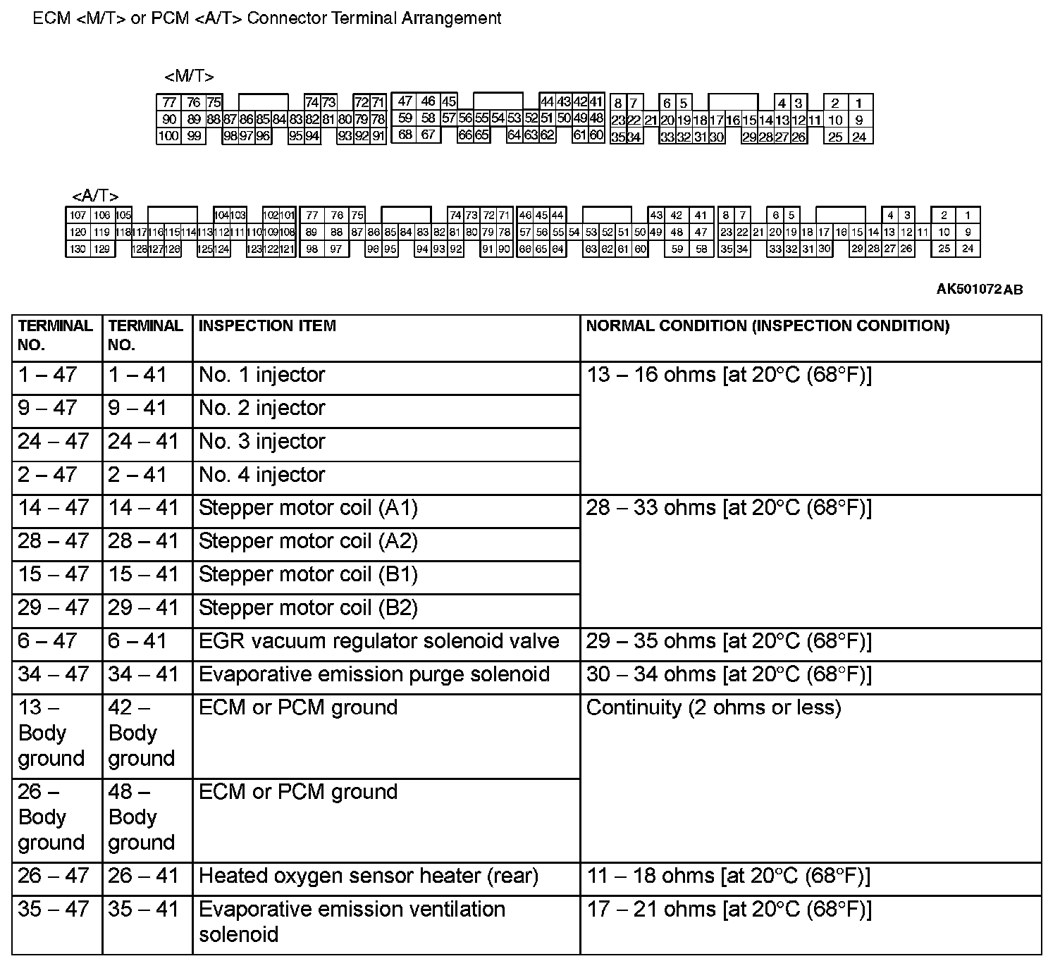 ECM <M/T> Or PCM <A/T> Connector Terminal Arrangement Part 1:
