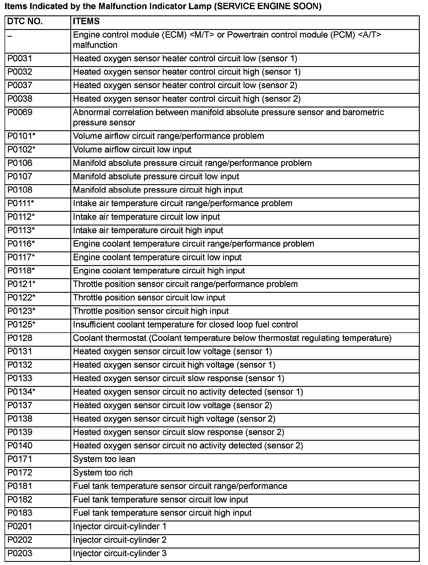 P0031 - P0203: