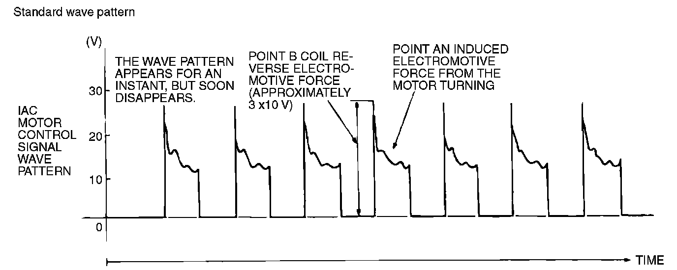 Check that the standard wave pattern appears when the idle air control motor is operating.