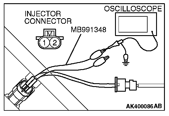 1. Disconnect the injector connector, and connect the test harness special tool (MB991348) in between. (All terminals should be connected.)