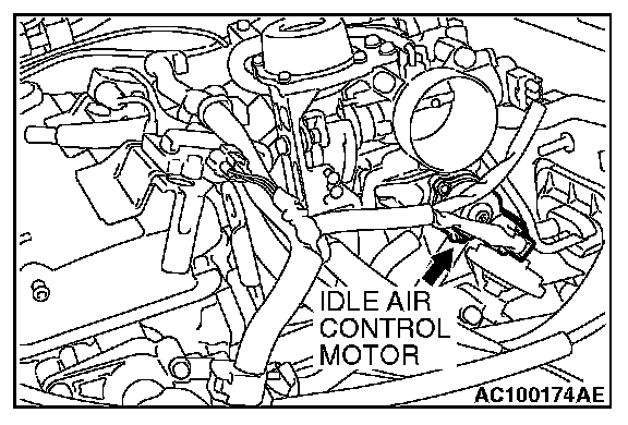 2. Check the operation sound of the IAC motor can be heard after the ignition is switched to the "ON" position (but without starting the engine).