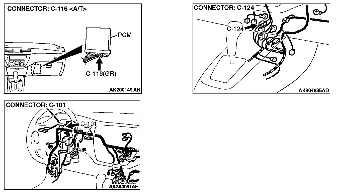 NOTE: Check harness after checking intermediate connectors C-101 and C-124. If intermediate connectors are damaged, repair or replace them. Then check that the malfunction is eliminated.