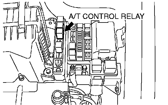 2. Use jumper wires to connect A/T control relay terminal 3 to the negative battery terminal and terminal 2 to the positive battery terminal.