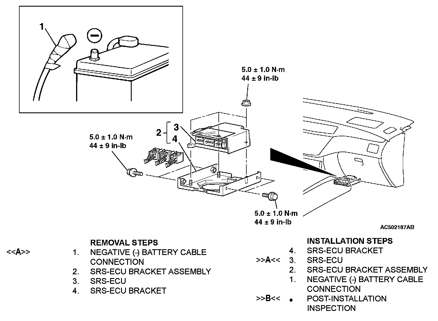 WARNING: The SRS may not activate if the SRS-ECU is not installed properly, which could result in serious injury or death to the vehicle's driver or front passenger.
