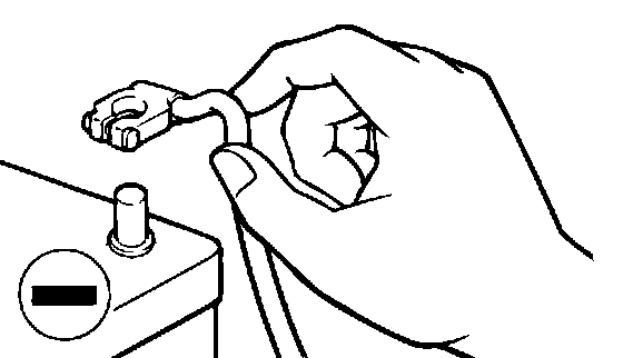 ^ Before connecting or disconnecting the negative battery cable, be sure to turn the ignition switch to the LOCK (OFF) position and turn off the lights. (If this is not done, there is the possibility of semiconductor parts being damaged.)