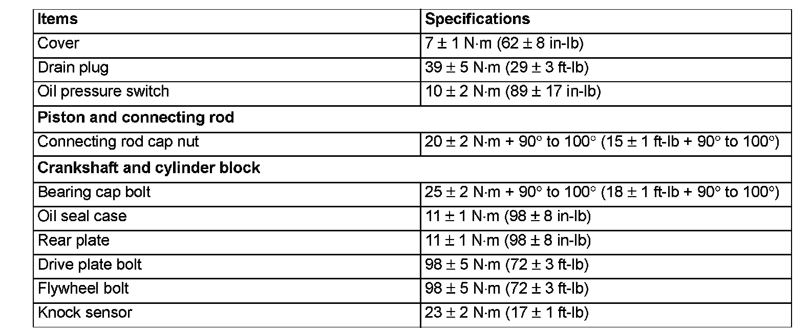 Torque Specifications