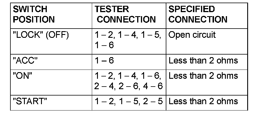 Ignition Switch Continuity Check