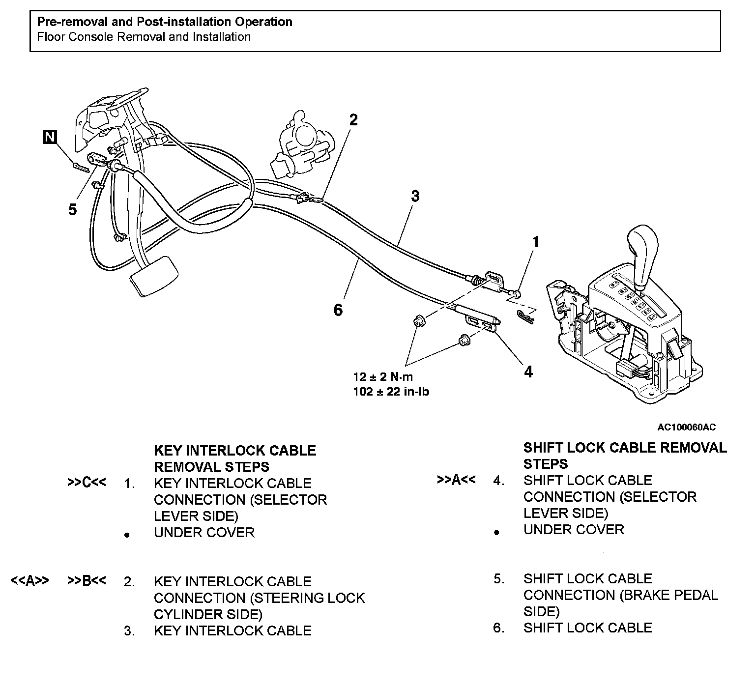 >>A<< SHIFT LOCK CABLE (SELECTOR LEVER SIDE) INSTALLATION
