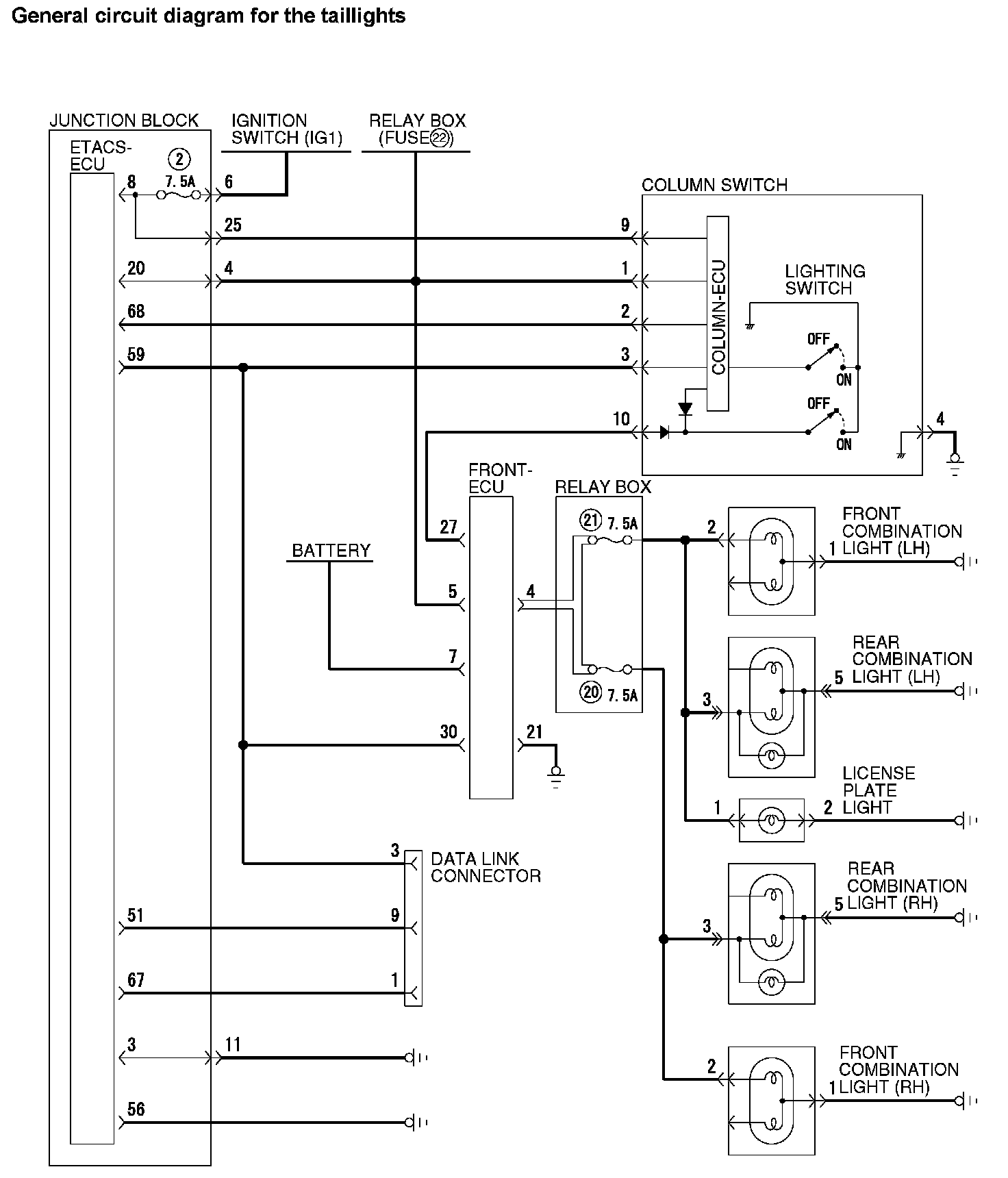General Circuit Diagram For The Taillights: