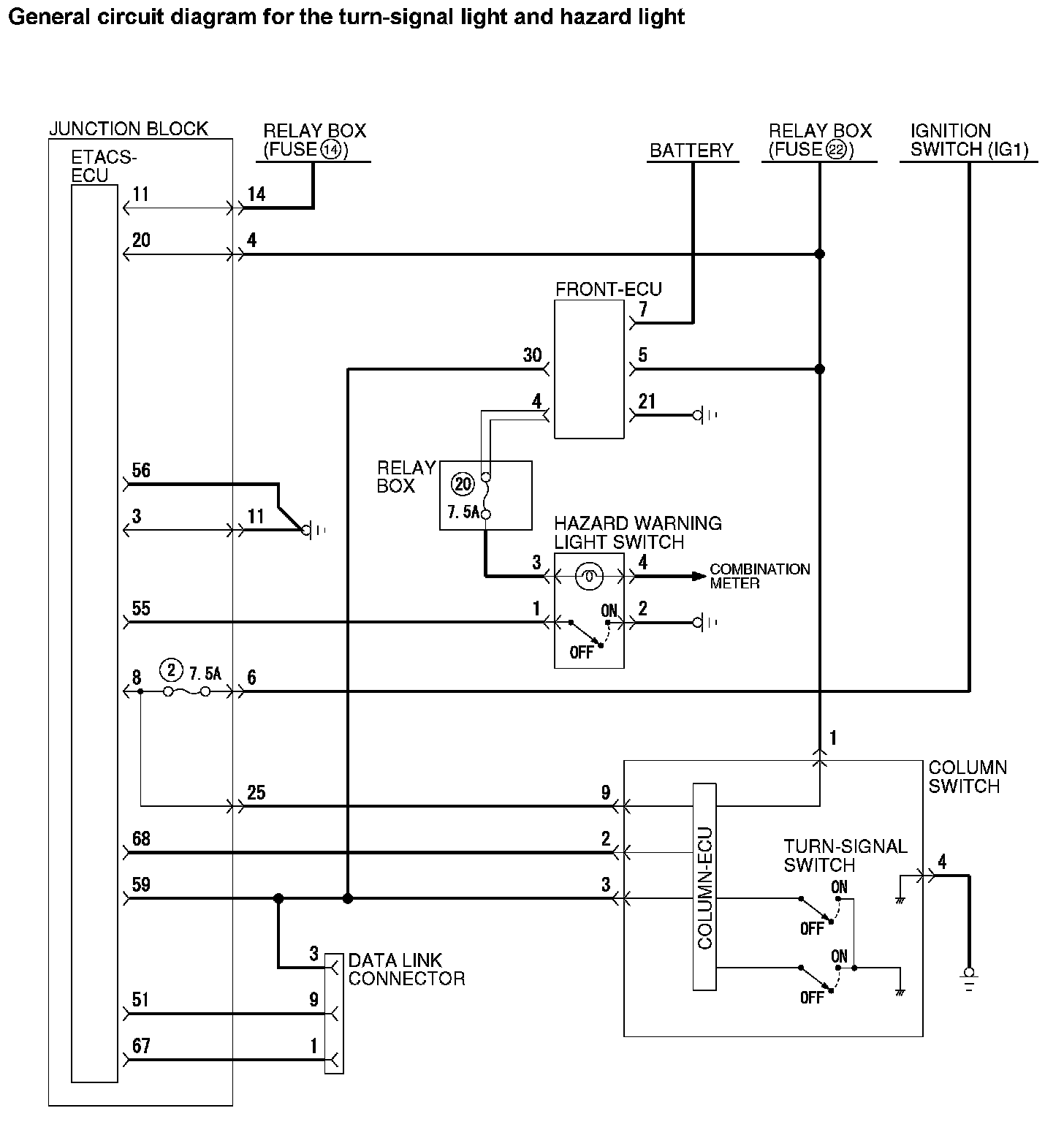 General Circuit Diagram For The Turn-signal Light And Hazard Light (Part 1):