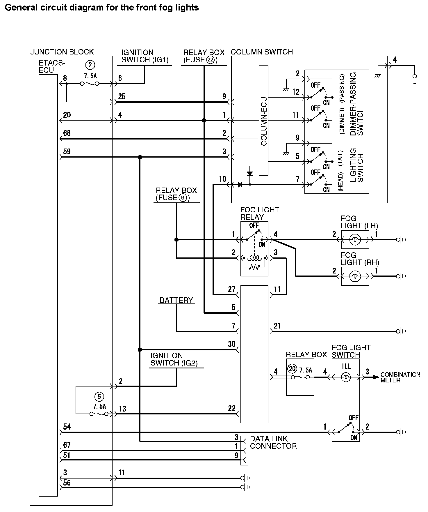 General Circuit Diagram For The Front Fog Lights (Part 1):