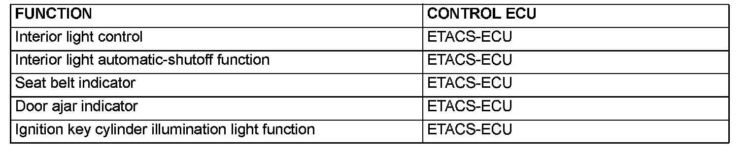 The ETACS-ECU controls the interior lights by turning them on and off in the following way: