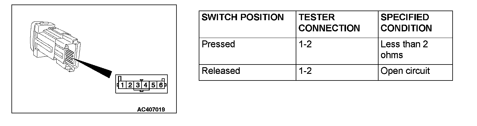 ASC OFF SWITCH CONTINUITY CHECK