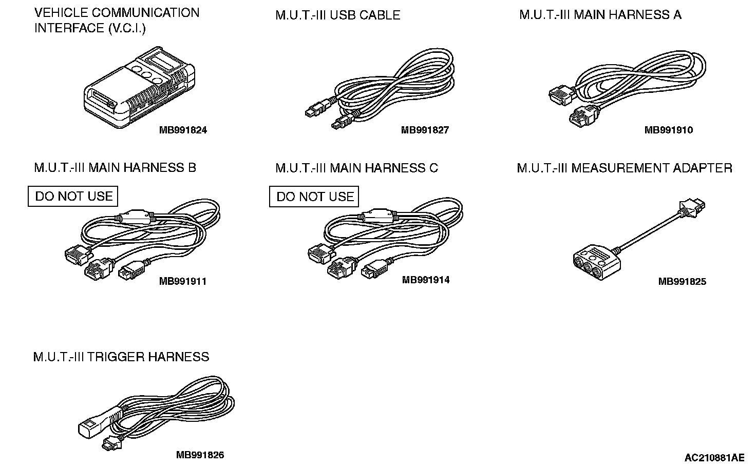 SCAN TOOL (M.U.T.-III SUB ASSEMBLY)CAUTION: Turn the ignition switch to the "LOCK" (OFF) position before disconnecting or connecting the scan tool.