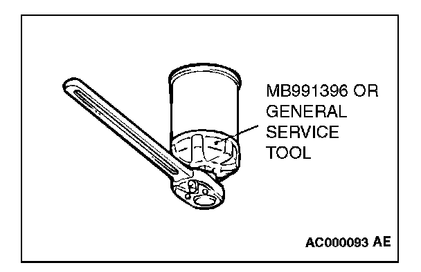 5. Where the oil filter O-ring touches the oil pan flange, tighten the oil filter to the specified torque using the commercially-available tool.