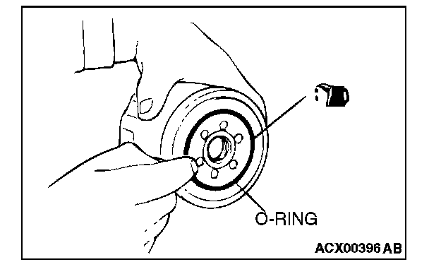 4. Apply a small amount of engine oil to the O-ring of the new oil filter.