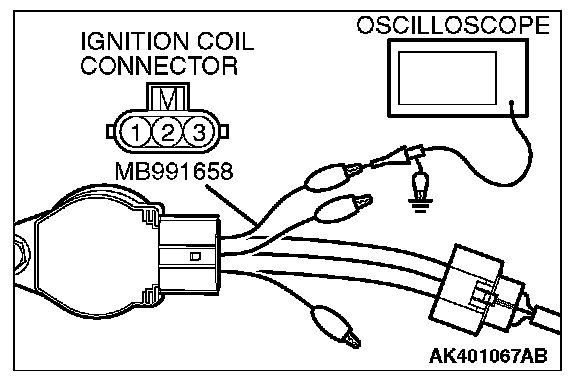 1. Disconnect the ignition coil connector, and connect the test harness special tool (MB991658) between the separated connector.