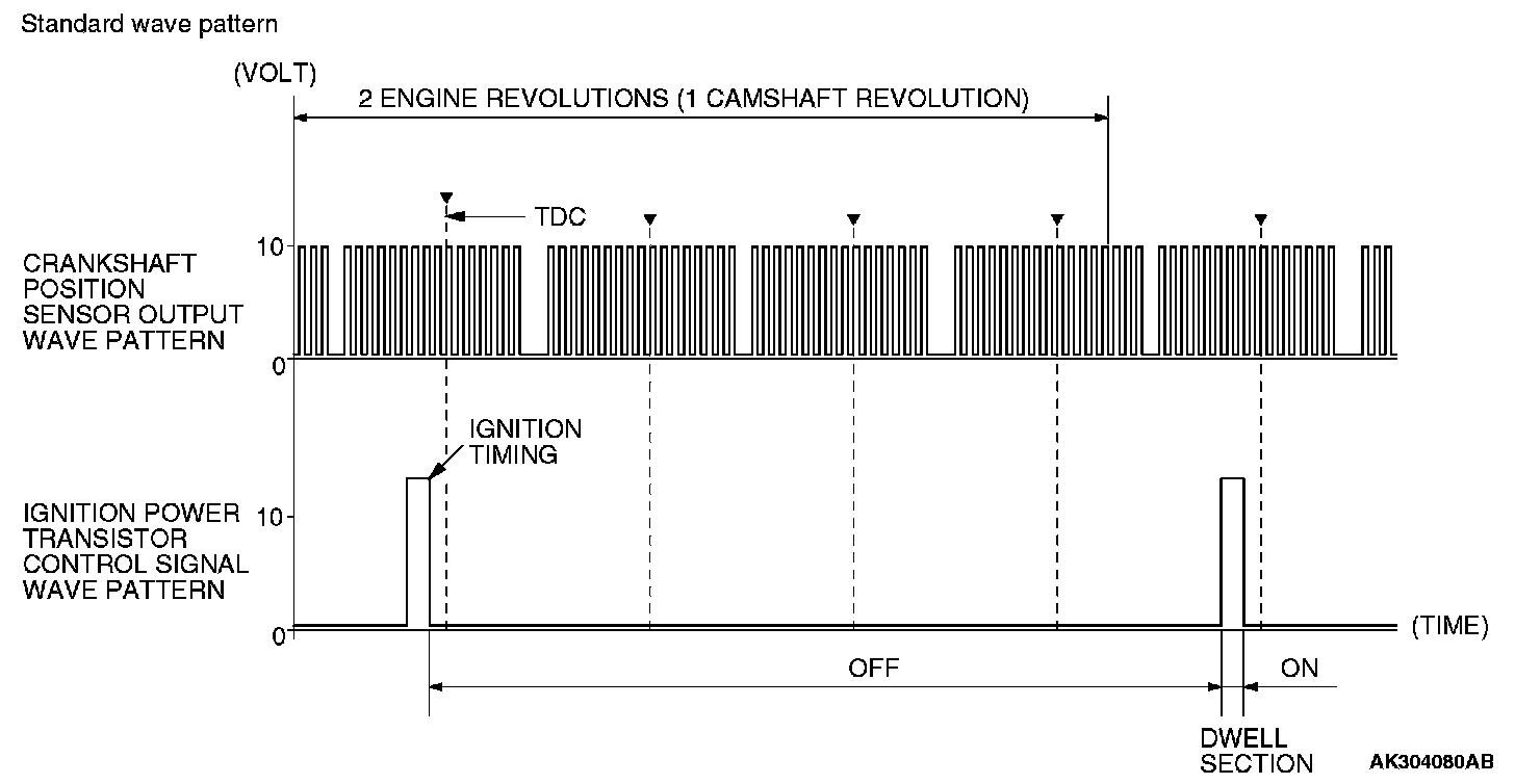 Point: The power transistor control signal (ignition timing) is advanced when the engine speed is increased.