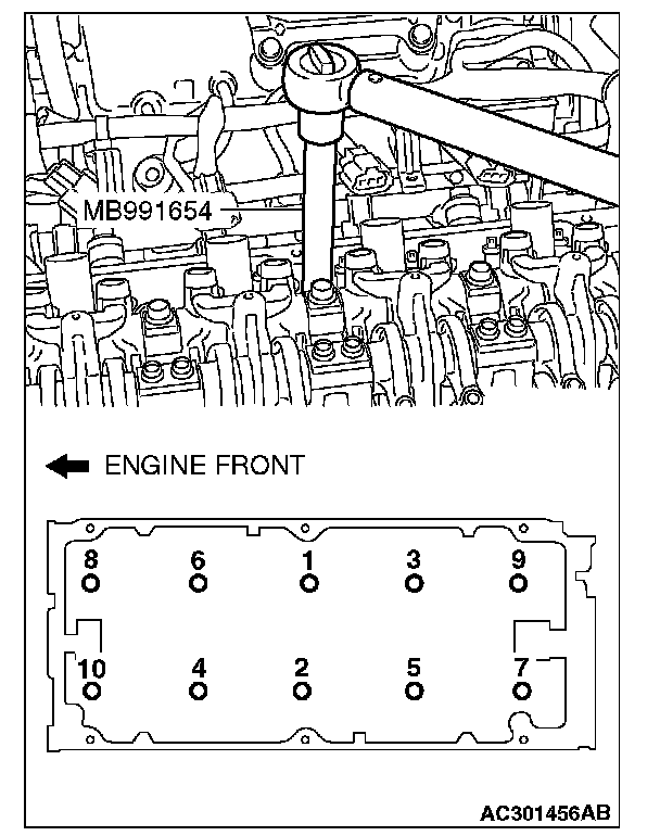 Loosen the bolts fully in the reverse sequence of that shown.