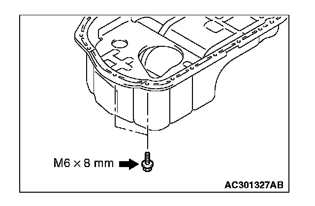 OIL PANTighten the engine oil pan mounting bolts to the specified torque. Be careful when installing, as the bolts indicated in the illustration have different lengths from the other bolts.