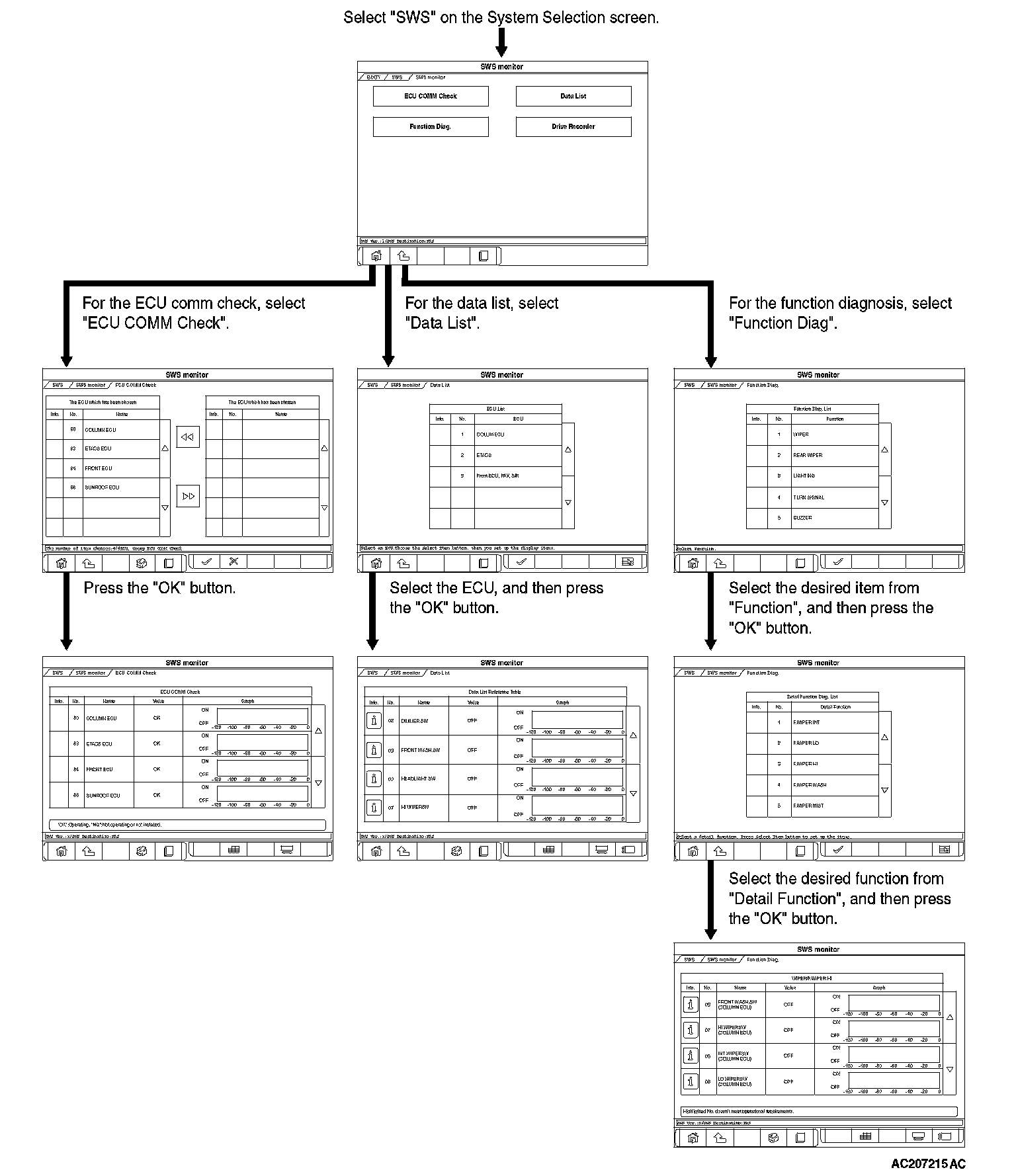 To carry out troubleshooting, operate scan tool MB991958 (M.U.T.-III Sub Assembly) as follows.