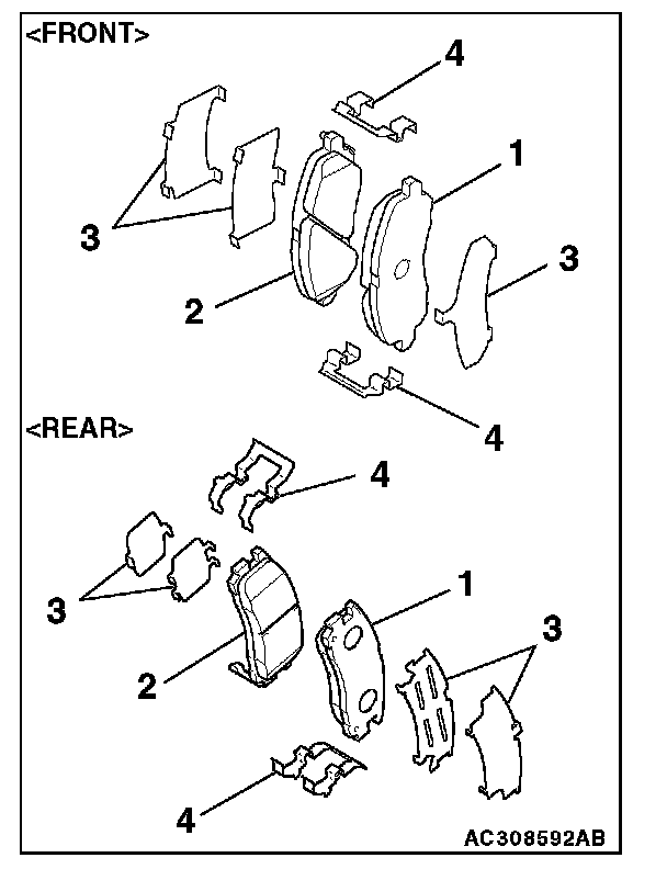 ^ Whenever a pad must be replaced, replace both LH and RH wheel pads as a set to prevent the vehicle from pulling to one side when braking.