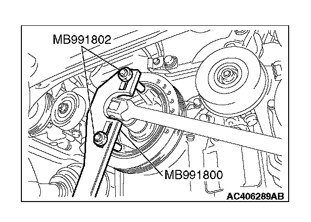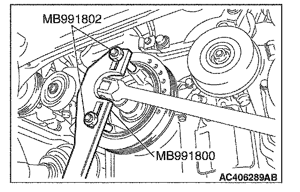 Use special tools MB991800 and MB991802 to remove the crankshaft pulley from the crankshaft.