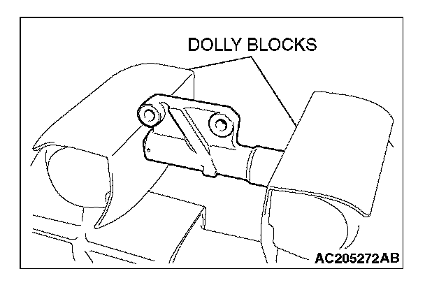 (1) Place two dolly blocks in a vice as shown in the illustration, and then place the auto-tensioner in the vice.