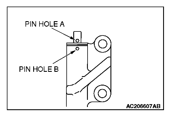 (2) Slowly compress the pushrod of the auto-tensioner until pin hole A in the pushrod is aligned with pin hole B in the cylinder.