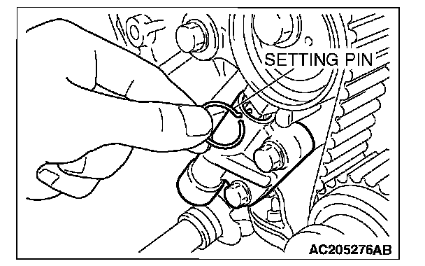 7. Remove the setting pin that has been inserted into the auto-tensioner.
