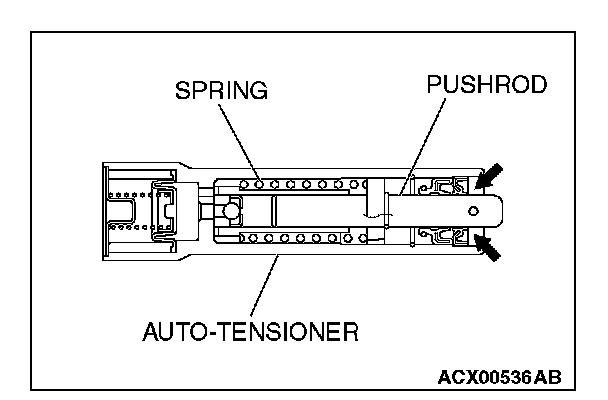 9. Wait for at least five minutes, then check that the auto-tensioner pushrod extends within the standard value range.