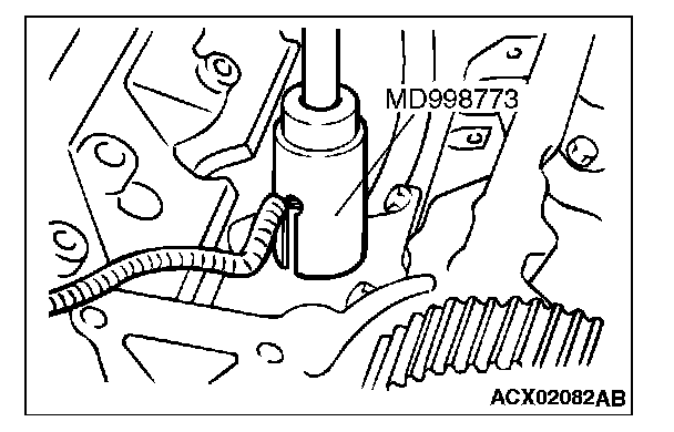 Use special tool MD998773 to tighten the knock sensor to the specified torque in the same manner as removal.
