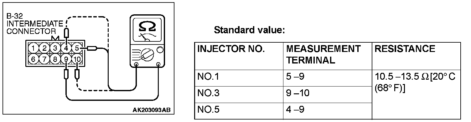 Standard value: 10.5 - 13.5 ohms [at 20 °C (68 °F)]