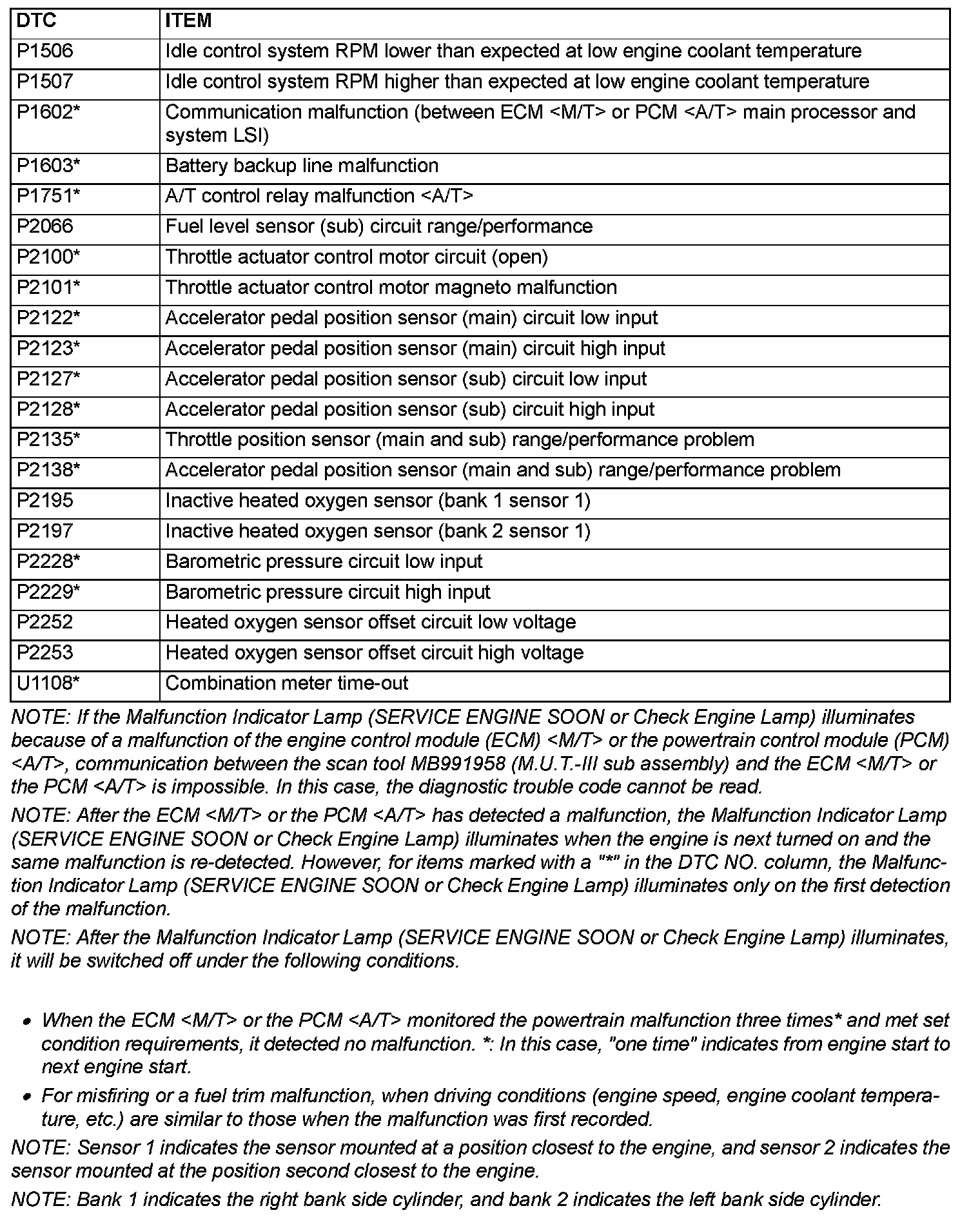 Items Indicated by the Malfunction Indicator Lamp (SERVICE ENGINE SOON or Check Engine Lamp)