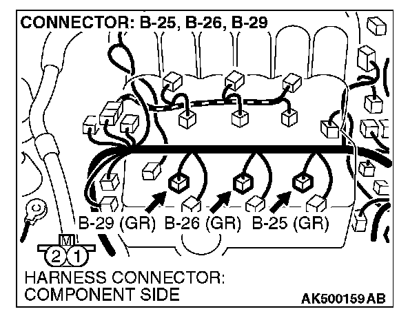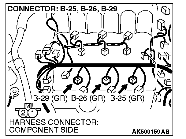 1. Disconnect the left bank injector connector B-25, B-26, B-29.