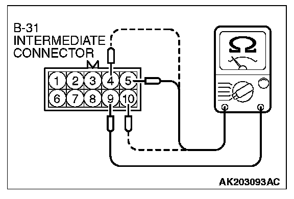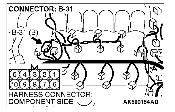 STEP 9. Check the right bank injector resistance at intermediate connector B-31.
