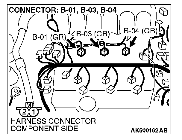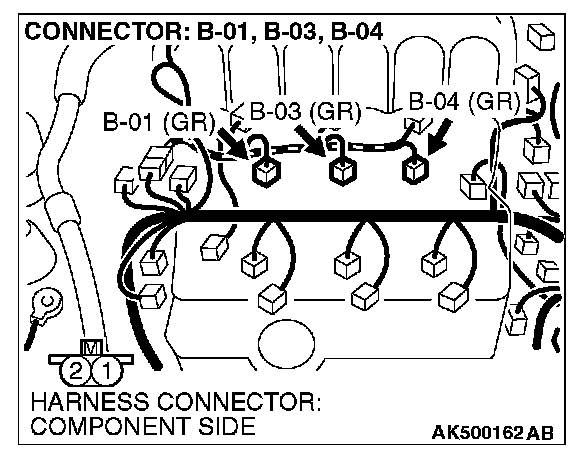 STEP 11. Check harness connector B-01 or B-03 or B-04 at right bank injector for damage.