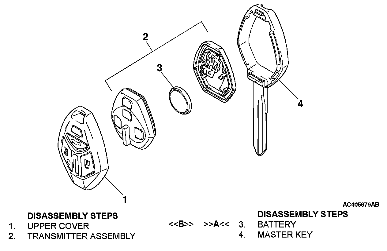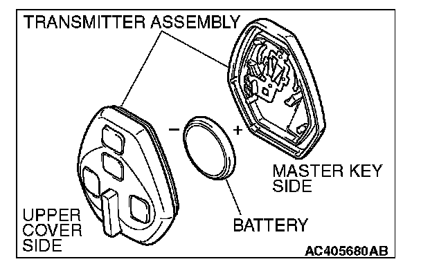 Install a new battery to the transmitter assembly with its (+) side facing towards the master key side.