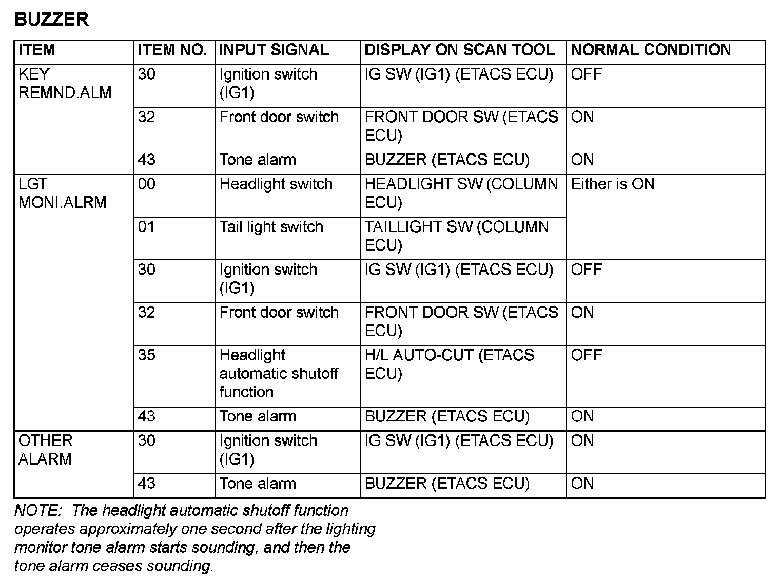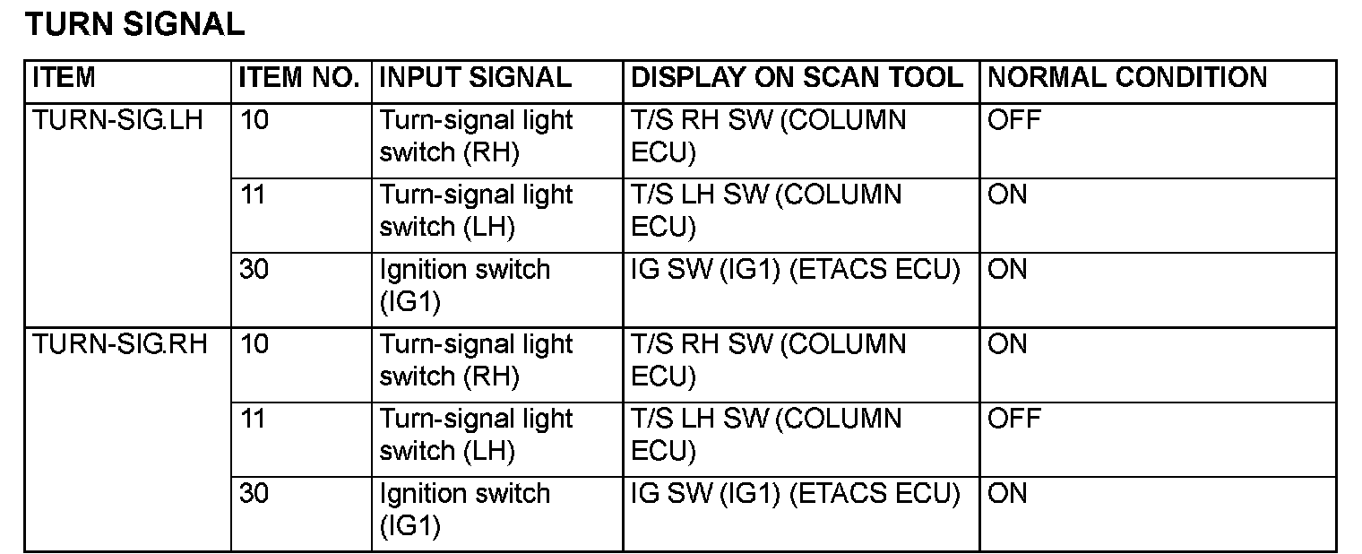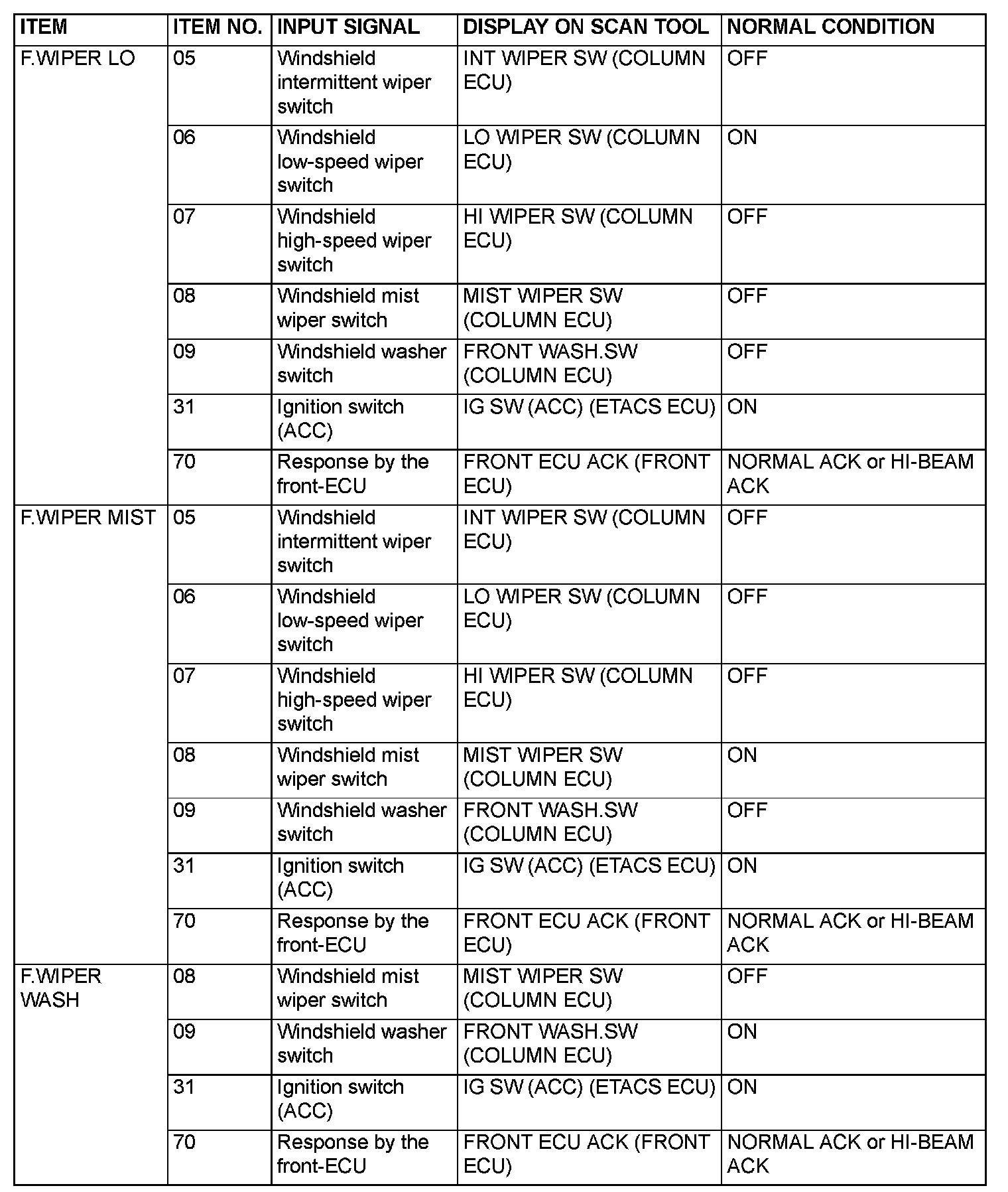The table below shows the service data and their normal condition, which are displayed during the "Function Diag." The column "Normal condition" shows values that are shown when each operation is made.