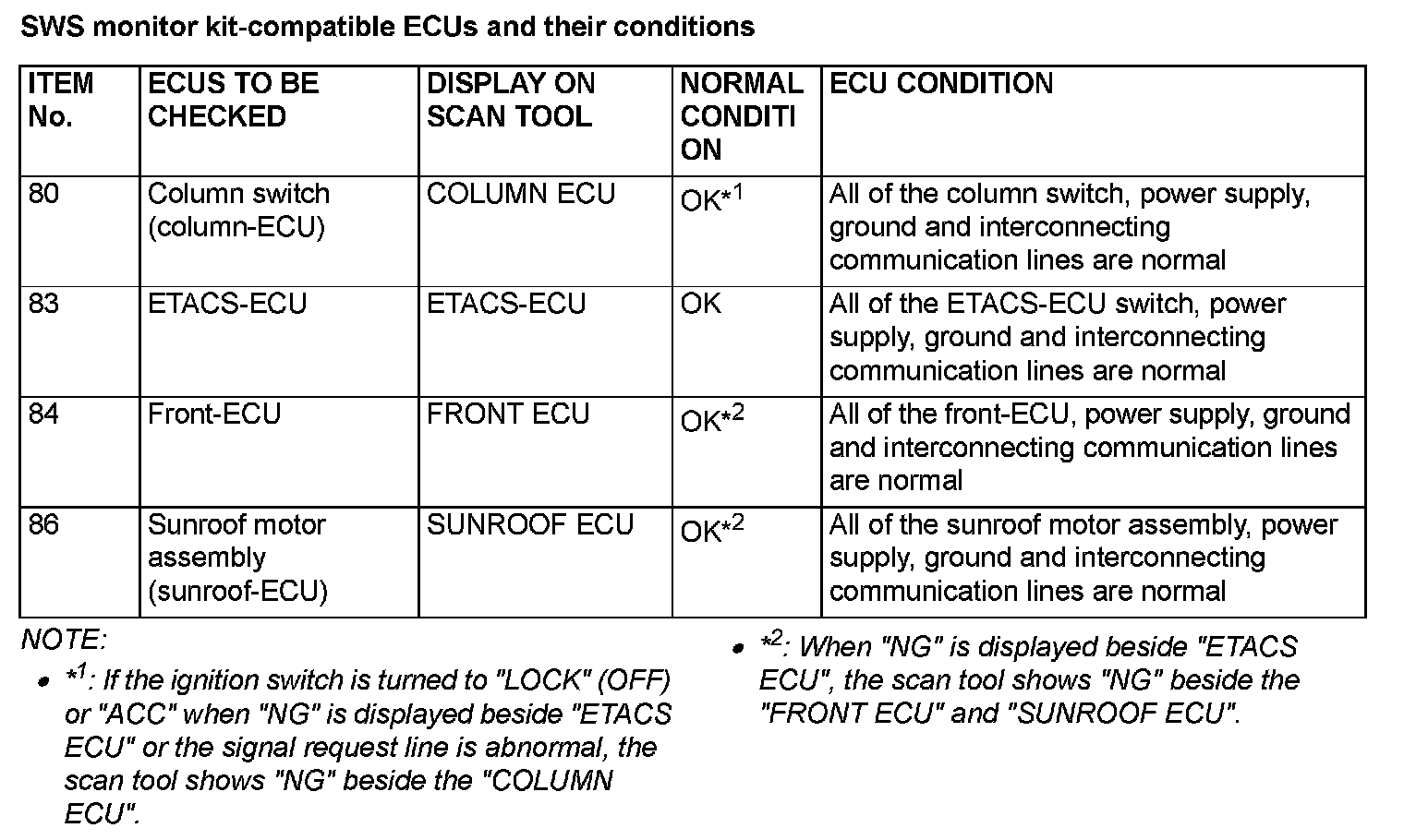 2. The following ECUs can be checked by using the scan tool MB991958 (M.U.T.-III Sub Assembly) and the SWS monitor kit.