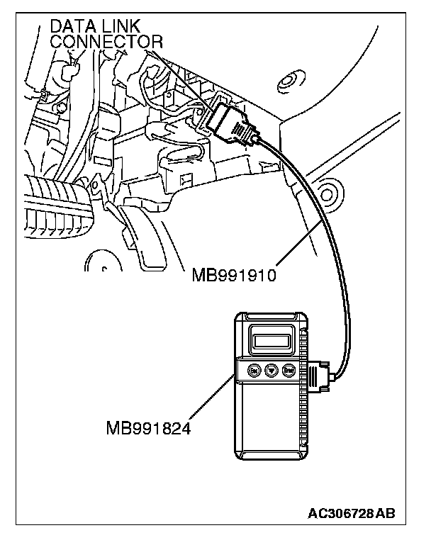 3. Connect special tool MB991824 (V.C.I.) to the data link connector.