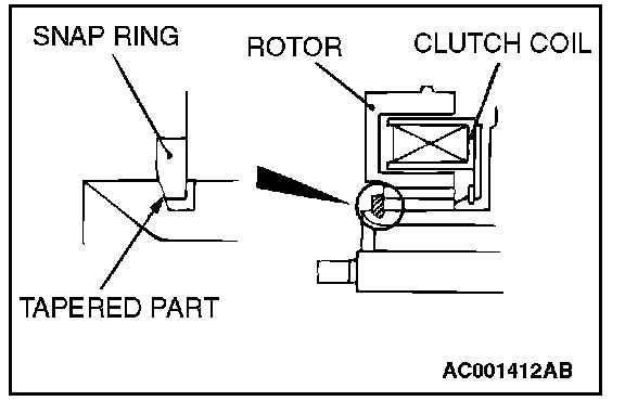 Using snap ring pliers, fit the snap ring so that the snap ring s tapered part is on the outside.