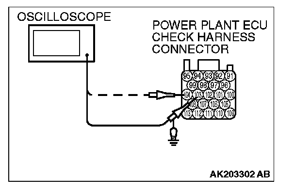 3. Connect the oscilloscope to check harness terminal No. 103. (Check the crankshaft position sensor signal wave pattern.)