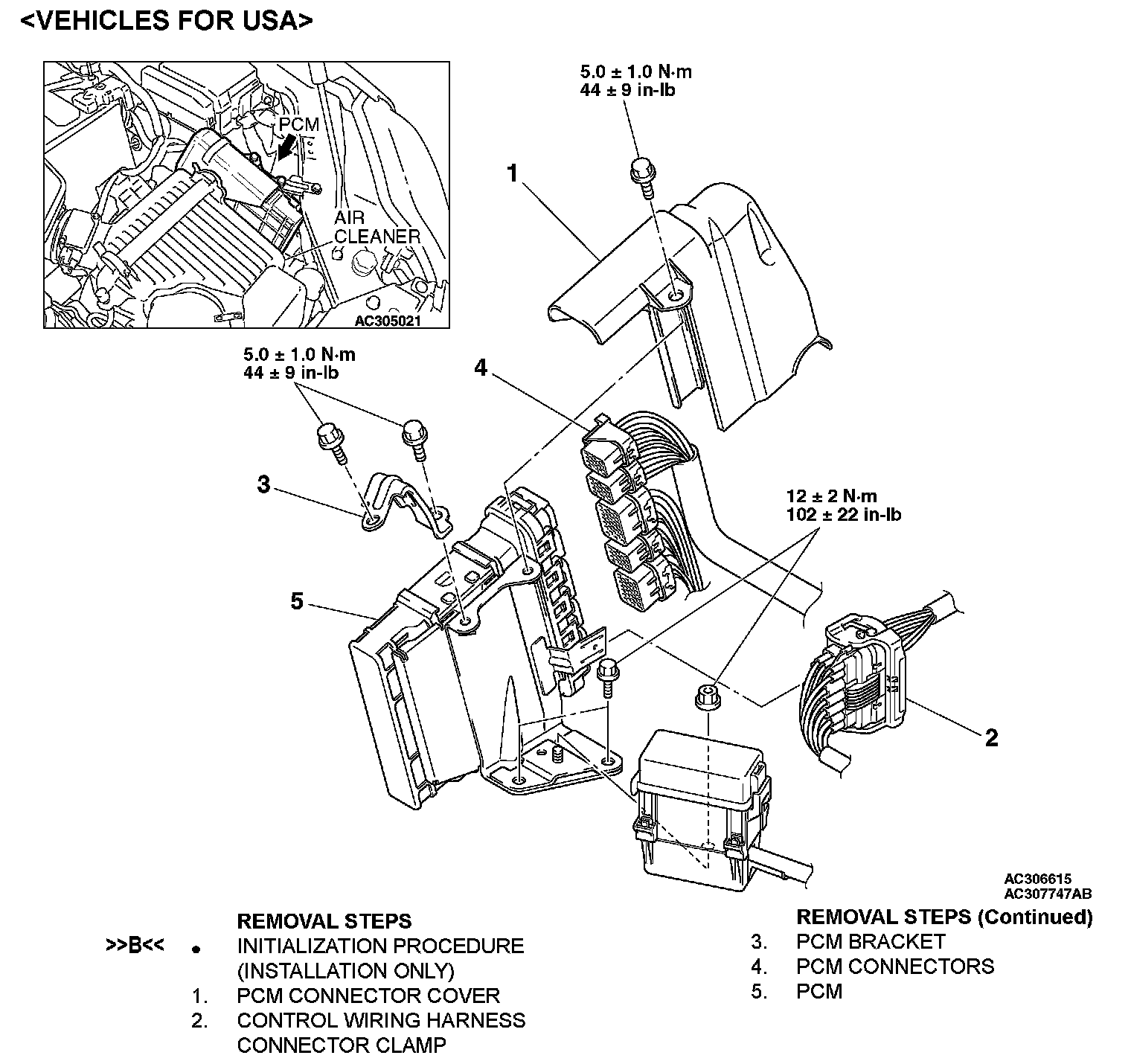 - Do not replace the PCM and the ETACS-ECU simultaneously. Always replace either one of the ECUs first, and register the encrypted code (Refer to Chassis Electrical, Ignition Switch - Encrypted Code Registration Criteria Table). Then, replace the other ECU.