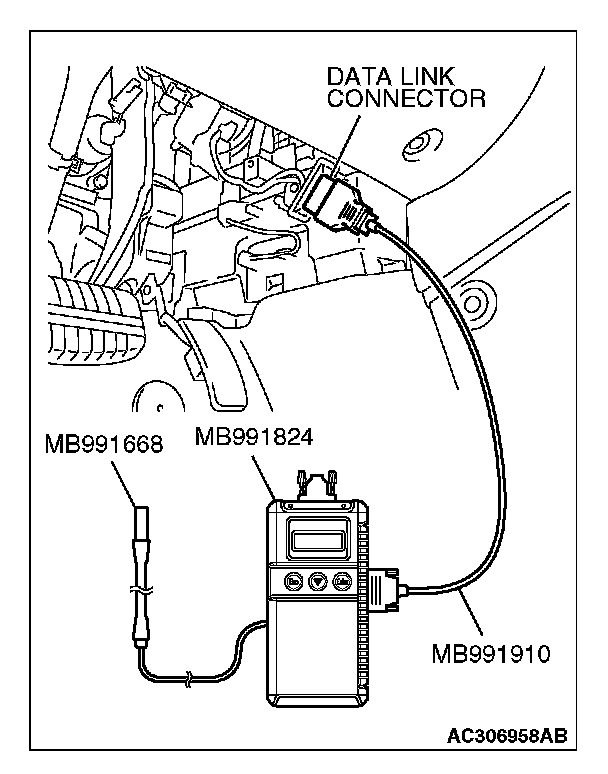 1. Connect scan tool MB991958 to the data link connector.