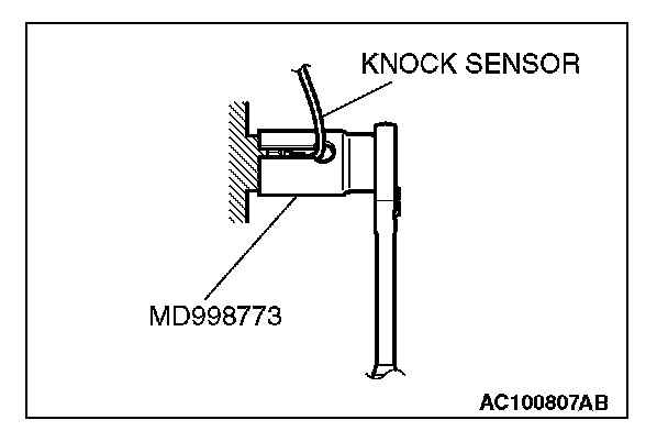Use special tool MD998773 to tighten the knock sensor to the specified torque in the same manner as removal.