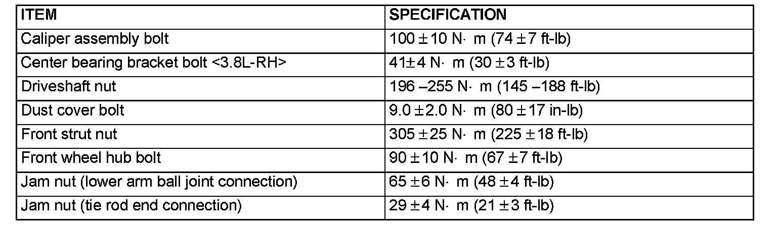 FASTENER TIGHTENING SPECIFICATIONS