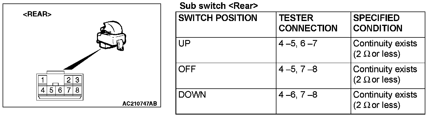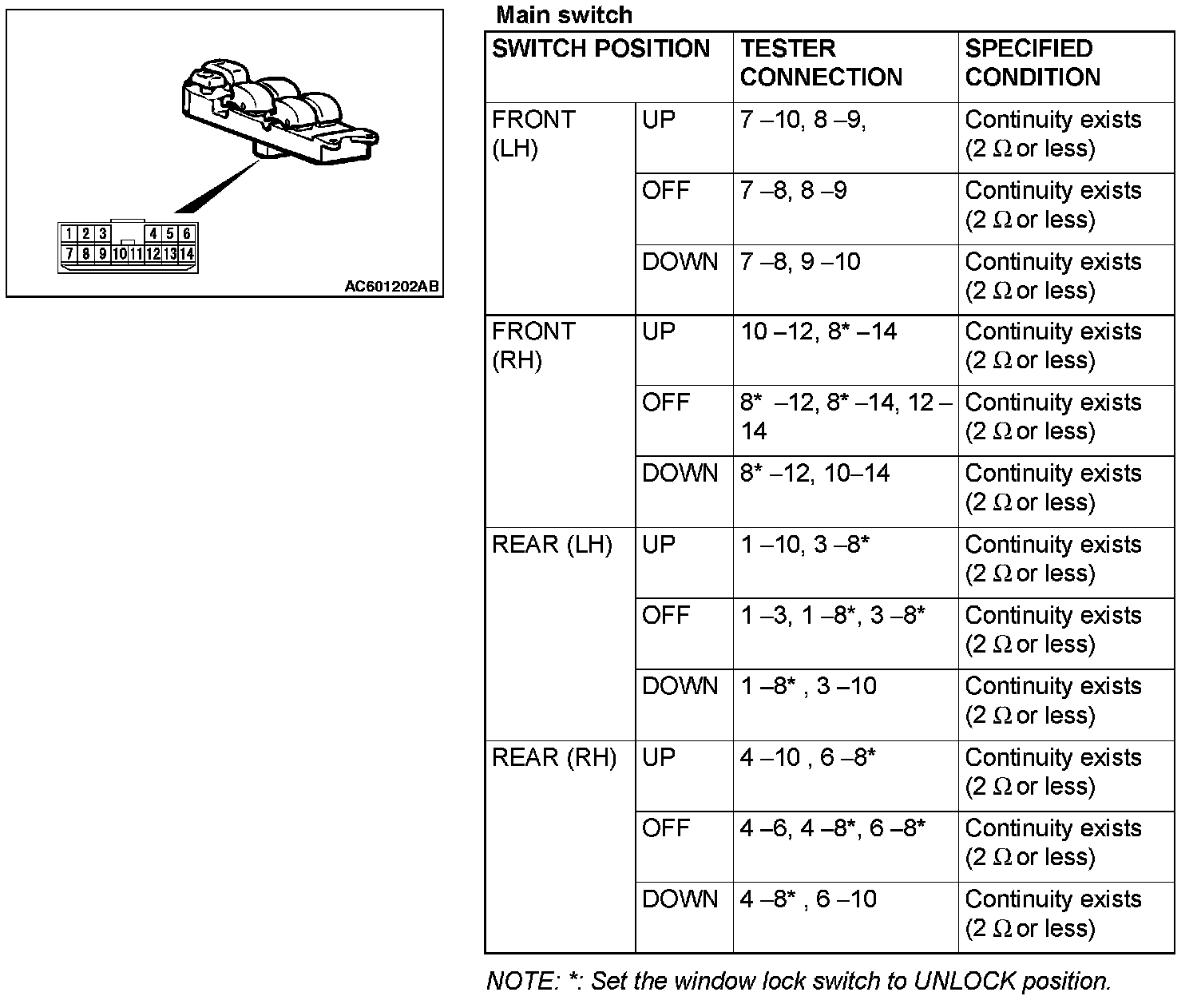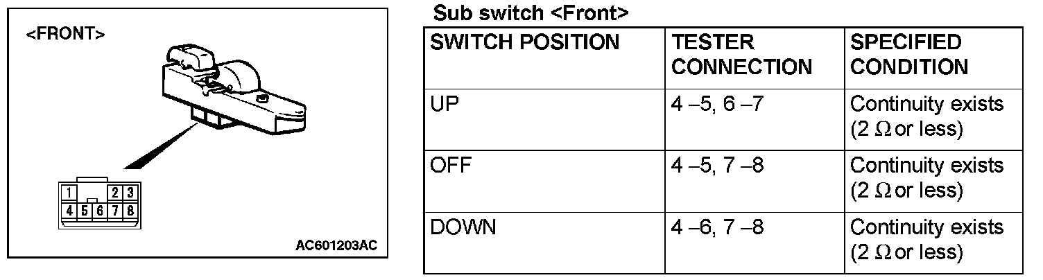 INSPECTIONPOWER WINDOW SWITCH CONTINUITY CHECK